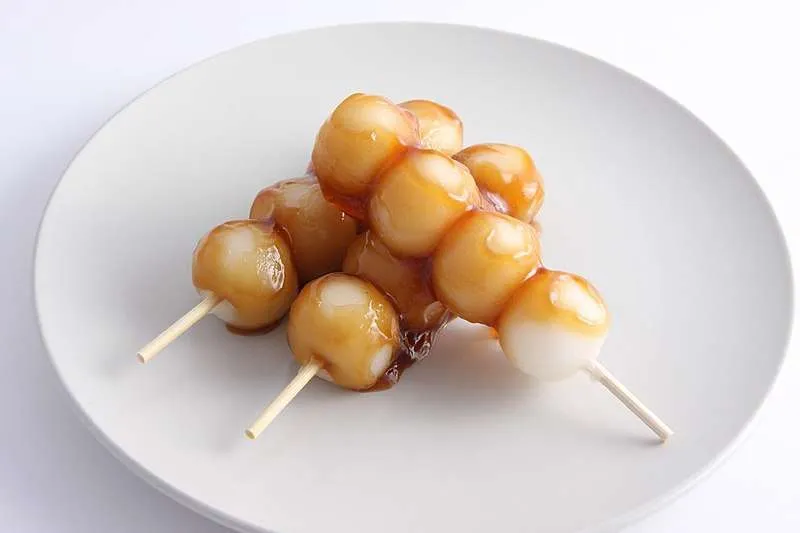 Данго часто продают на улицах в туристических местах. Самая частая разновидность – три или пять круглых белых шариков нанизаны на шпажку и политы сладковатым соевым соусом, их еще иногда обжаривают. В отличие от моти, при изготовлении данго используется не только клейкий рис, но и рассыпчатый. Правда, когда их ешь, это вообще неочевидно – данго сбиты так крепко, что ощущаются как кусок однородной плотной белой массы, что-то вроде сала.