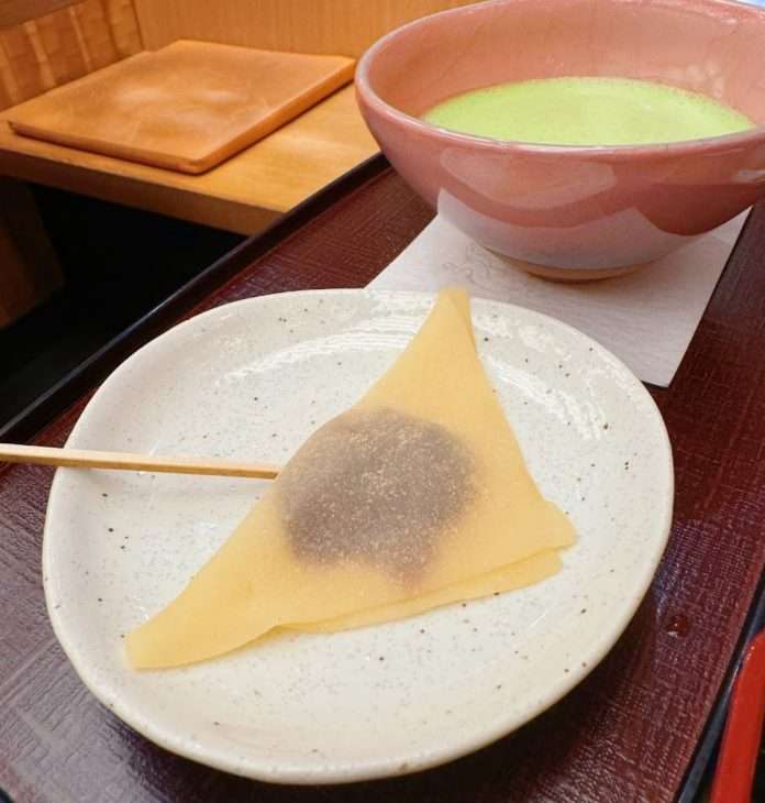 Яцухаси чаще всего выглядят как слегка прозрачные треугольнички из тонкого теста. Посередине под тестом виден небольшой кругляш начинки. Тесто делают из рисовой муки (рис берут клейкий), воды и корицы, а начинка в традиционном варианте – паста из бобов адзуки. Получается похоже на моти, хотя знатоки, наверное, умеют различать на вкус, что есть что (мне одинаково нравится и то, и другое). В киотских кондитерских могут продавать и яцухаси вообще без начинки, и яцухаси с разнообразными фруктовыми вкусами, от манго до банана, – чтобы было современнее.
