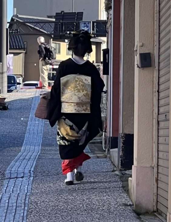 Тут, конечно, тоже можно застать и сфоткать гейшу исподтишка (только не пытайте бегать перед ней и мешать ей идти).