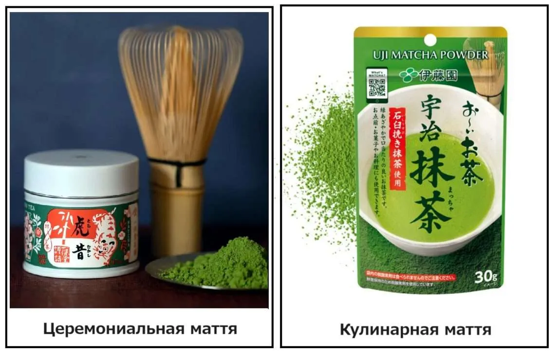 Но и это ещё не всё. Очень грубо всю маття можно поделить на две категории: кулинарную и церемониальную. Церемониальная используется в японской чайной церемонии, и если вы планируете маття именно пить, церемониальный товар в небольших баночках – ваш выбор.