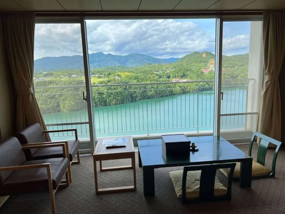 Также можно заселиться в рёканоотеле на горячих источниках у ущелья Эна. Сто лет назад здесь возвели плотину, а сейчас по искусственному озеру ходят кораблики за 1500 иен и показывают красивые скалы на отвесных берегах. Отель бетонный, конвейерный, кайсеки довольно средний, как и онсен, но при этом номер в японском стиле на одного стоит 4500 рублей (без еды; с едой вдвое больше, что все равно очень мало!!). Красивую юкату дают, конфетка и чай в номере есть, вид из окна волшебный (больше фоток с моей поездки тут).