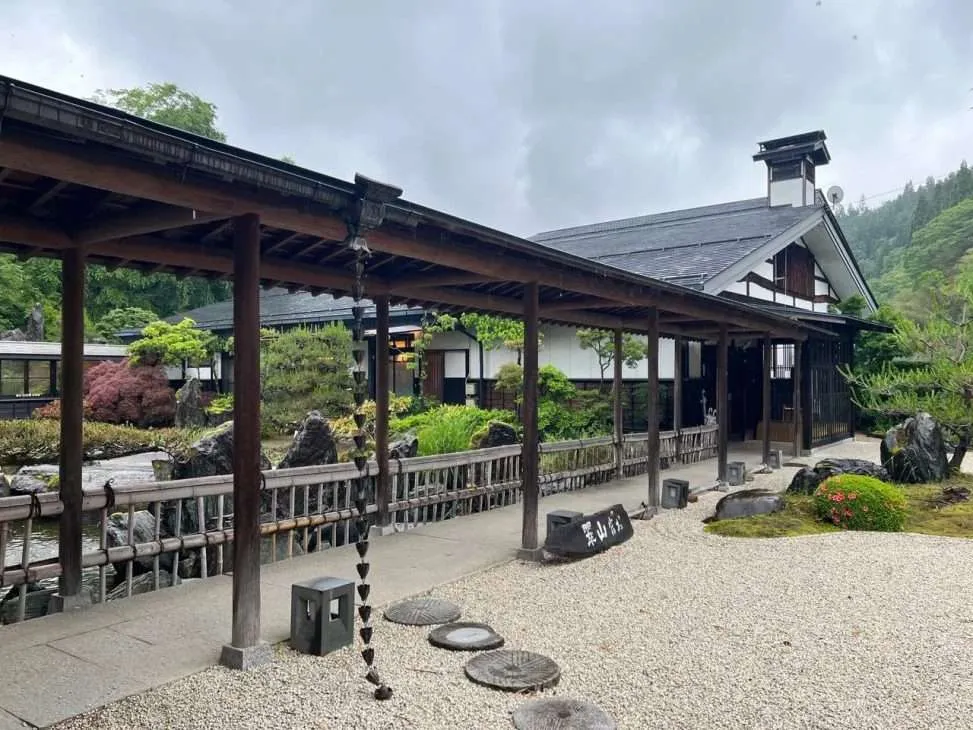 Также я нашел крутейшее место, где можно поселиться ПОСЛЕ прогулки по Накасендо – деревню на горячих источниках Хиругами-онсен, а в ней протестировал традиционнейший рёкан Oyado Sansui. От Магоме туда можно добраться всего за 40 минут на прямом автобусе (или на полчаса дольше с пересадкой). Именно от Магоме, от Цумаго надо сначала вернуться на автобусе в Магоме, а там уже дойти пешком до остановки на шоссе.