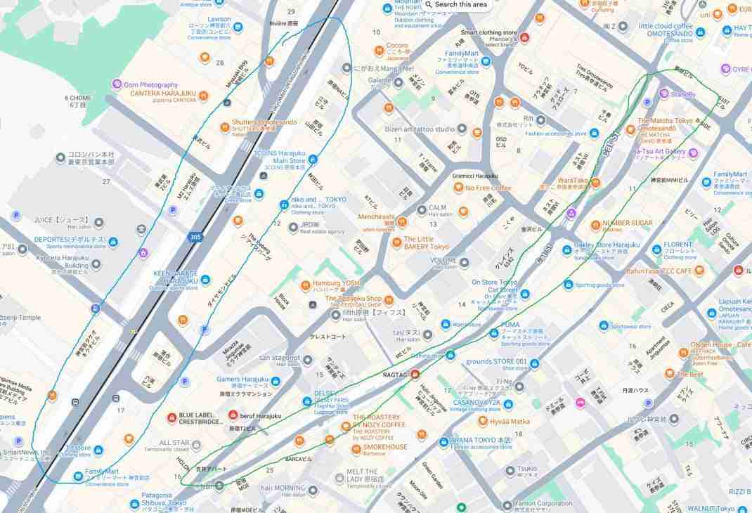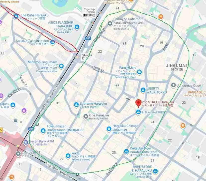 От Омотэсандо в сторону Сибуи отходит небольшая улочка Cat Street с отдельно стоящими магазинами midrange брендов (например, настоящих японских джинсов Blue Jeans) и вайбами Третьего променада в Санта-Монике.