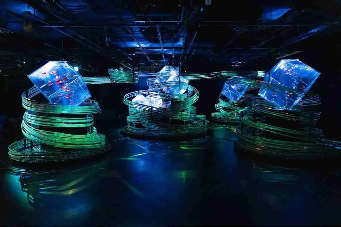 У команды Teamlab есть второй такой интерактивный музей в другом месте Токио – Teamlab Planets, где фишка – в том, что по залам нужно ходить босиком. Иногда – просто так, иногда – шлепая по мелководью. Водных залов достаточно много, если проигнорировать их – пропустите большую часть экспозиции. Правило насчет босиком жестко соблюдается – нельзя даже щеголять в резиновых шлепках. Так что если у вас есть сомнения насчет гигиеничности голоногого забега с толпой иностранцев (воду дезинфицируют хлоркой, но не всех это утешает) – лучше воздержитесь от посещения. Билеты в Planets тоже лучше покупать заранее, за 3-5 дней.