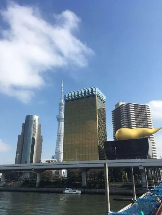 Если заметите вблизи современное здание со смешным золотым облачком на одной из башен – это штаб-квартира компании Асахи. Облачко символизирует “огонь Асахи”, а стоящая рядом башня с желтыми (официально – янтарного цвета) окнами и белыми панелями наверху – стакан пива с пенкой. У компании есть неплохой пивной музей в Осаке, а в штаб-квартире в Токио можно разве что подняться в ресторан Asahi Skyroom на 22 этаже и насладиться (помимо пива, в том числе безалкогольного) неплохим видом на Tokyo Skytree и Сэнсодзи.