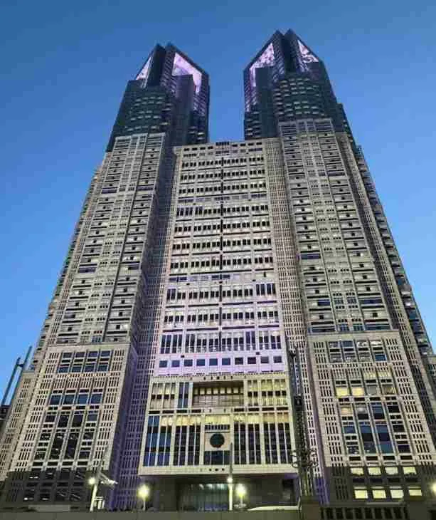 К западу от станции – солидный деловой район, где находится здание токийской мэрии. Если любите смотровые площадки, мэрию пропускать нельзя! Насладиться панорамой города (с высоты 202 метра) тут можно совершенно бесплатно. В обоих башнях здания оборудовано по площадке. Виды отличные, в хорошую погоду можно разглядеть Фудзи. Время работы – с 9-30 до 22-00 (последних посетителей запускают в 21-30), но северную башню закрывают раньше – уже в 17-30 (исключение – дни, когда в южной башне санитарный день, тогда время работы продлевают до 22-00). Выходные – с 29 декабря до 3 января, исключая 1 января.