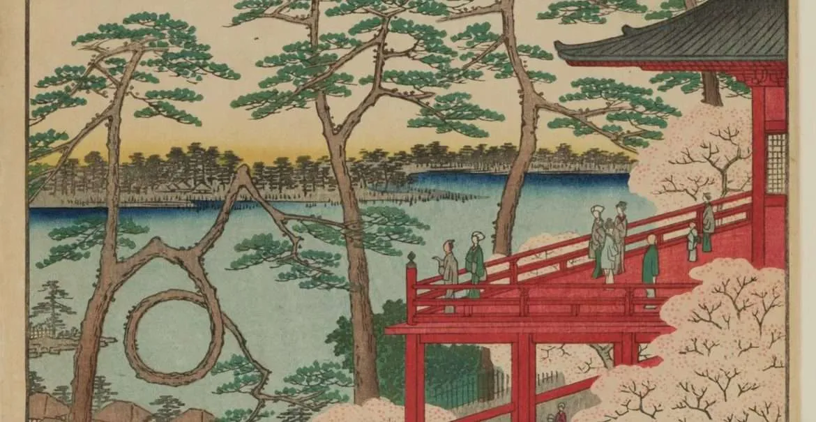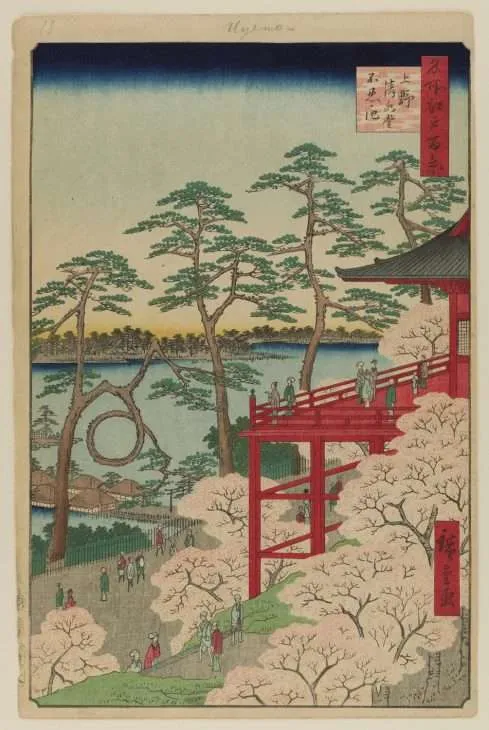 А самое старое здание в парке – буддийский храм Киемидзу Каннон До. Рядом с ним растет свернутая колечком сосна, которую рисовал еще Утагава Хиросигэ в цикле гравюр “100 знаменитых видов Эдо”. Правда, именно той сосны, которую он изображал, уже нет – ее уничтожил тайфун еще в начале эпохи Мэйдзи. Сосна, которая растет сейчас – реконструкция силами японских садовников, которые завершили работу над ней в 2012 году.