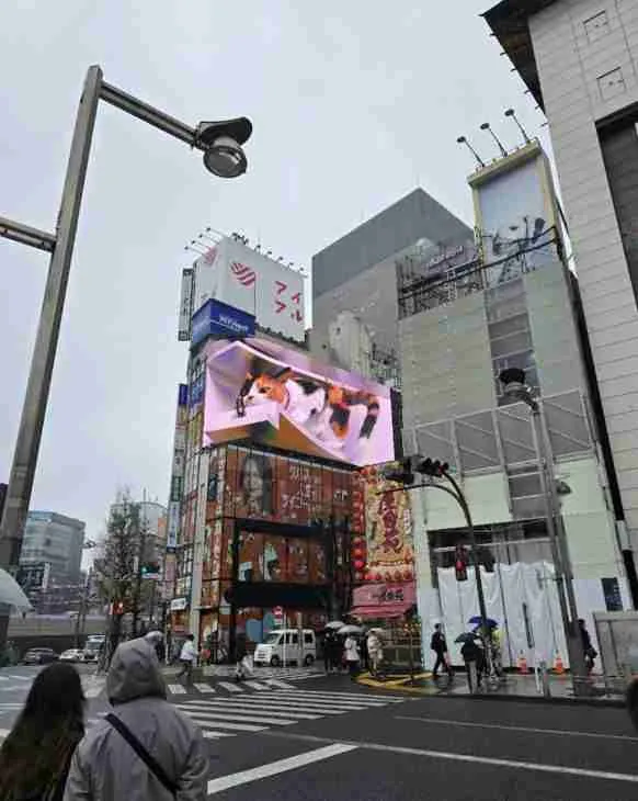 Знаменитая инсталляция с 3D-котиком установлена на здании на перекрестке как раз неподалеку от JR-выхода Kabukicho Exit – вот точка на карте, чтобы вы точно не промахнулись Котик вылезает каждые 15 минут и привлекает внимание громким мявом, в остальное время крутится реклама.