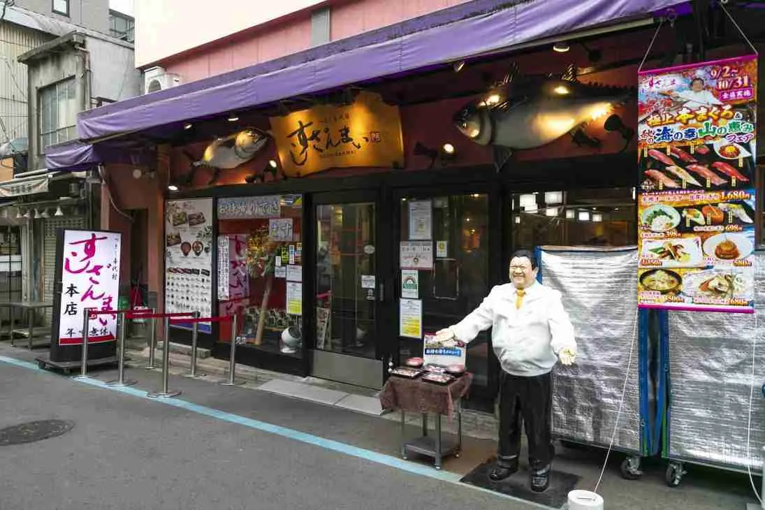 Зато на Цукидзи осталось много маленьких сушилен – как семейных, так и филиалов сетевых, где можно антуражно поесть, созерцая фотки владельцев с теми самыми тунцами. Достаточно найти рынок Цукидзи на google-картах и попросить показать суши рядом, а потом отправиться в любое заведение с оценкой не меньше 3.5 и не больше 4.6. В Токио в принципе довольно сложно найти совсем уж невкусные суши, поэтому если вы живете далеко от Цукидзи, то специально ради еды сюда можно и не ездить. Но если уж окажетесь в окрестностях, почему бы и нет.