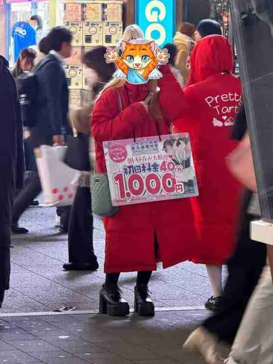 К слову, очень многие туристы принимают за проституток девушек, которые часто стоят в Кабуки-тё (особенно много их к западу от Gracery) с табличками в руках.