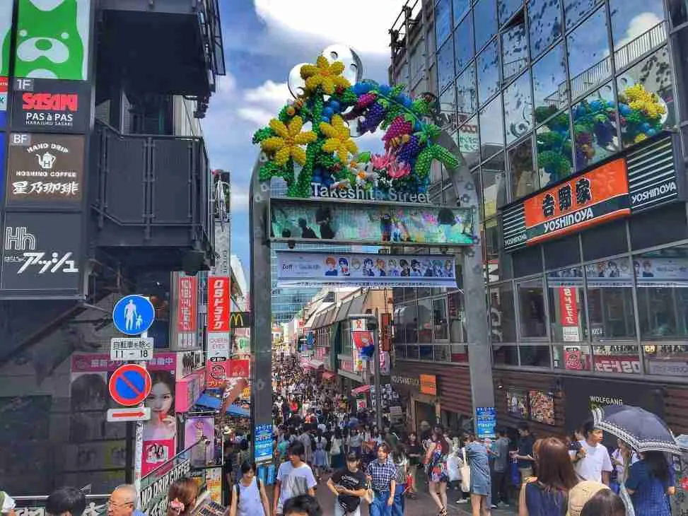 Отчасти это район подростковых субкультур – сюда интересно приходить за уличной едой вроде блинчиков со сладкой начинкой из взбитых сливок и клубники (я рекомендую местную точку Marion Crepes, куда мы с автором блога ходим за блинами уже двадцать лет) , а также чтобы поразглядывать прохожих. Основное место притяжения туристов – пешеходная улица Такесита-дори, где почти всегда оживленно и колоритно.