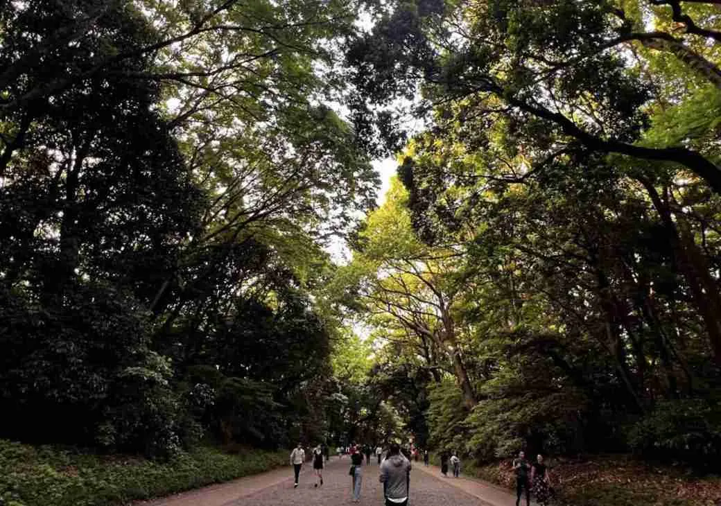 Парк плавно перетекает в заросли деревьев вокруг синтоистского святилища Мэйдзи (Meiji Jingu) с огромными воротами тории. Названо оно так в честь императора Японии Мэйдзи (и его императрицы) – того самого, который взошел на престол в 1867 году в результате революции Мэйдзи и с кем Япония стала усиленно модернизироваться и больше взаимодействовать с Западом. Впрочем, если вы во время поездки уже были в храмах и святилищах Киото (или планируете туда поехать), то в Токио уже необязательно заглядывать в Мэйдзи-дзингу – вряд ли впечатлитесь. Место значимое, но визуально не так поражает. Хотя если будет свободный часик и вы все равно у станции Харадзюку, то можно зайти (а еще тут отличный сувенирный магазин).